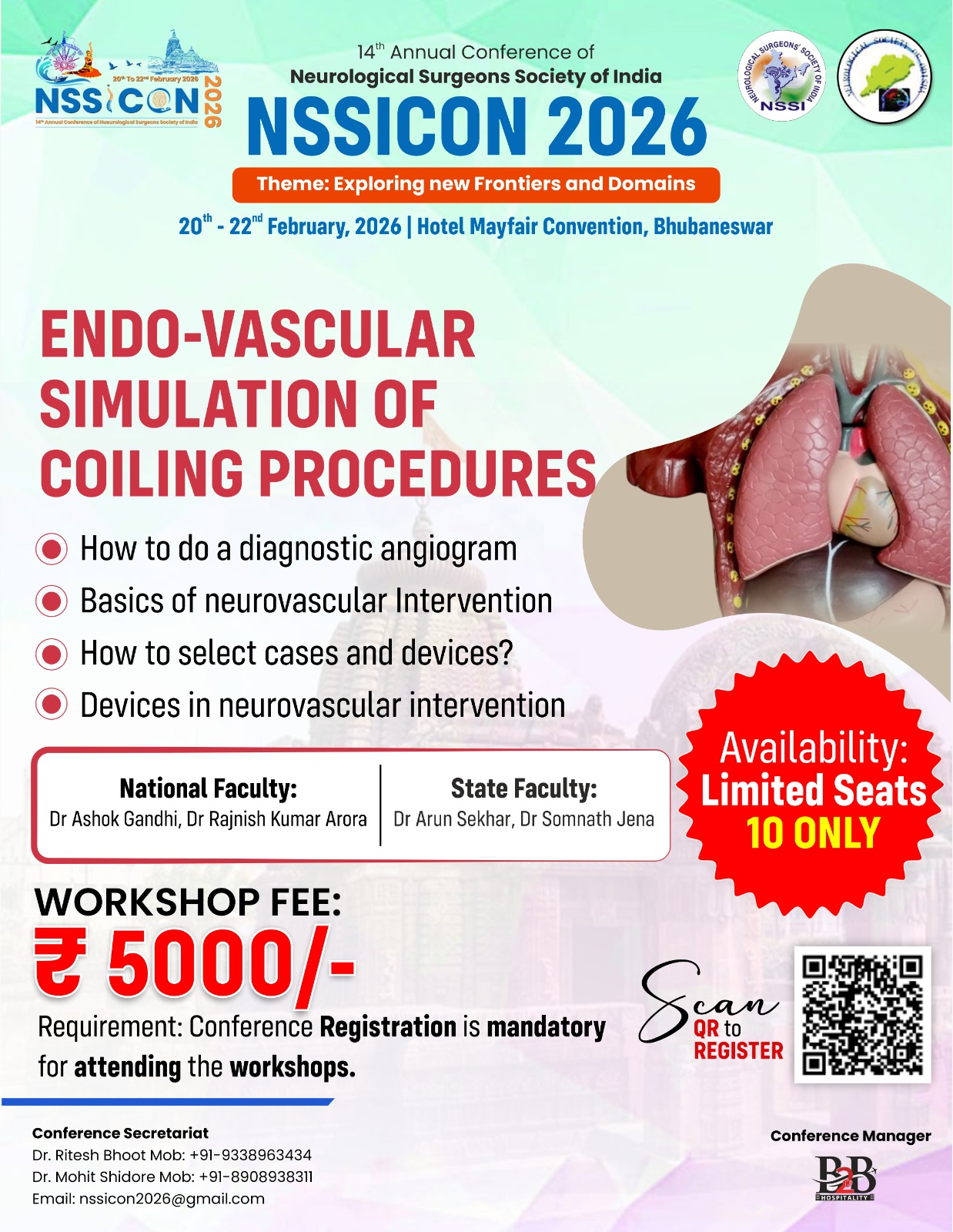| Endo-vascular simulation of coiling procedures | 20th Feb 2026 | 10 Only | Rs 5000/- | 9.00 am - 12.30 pm |