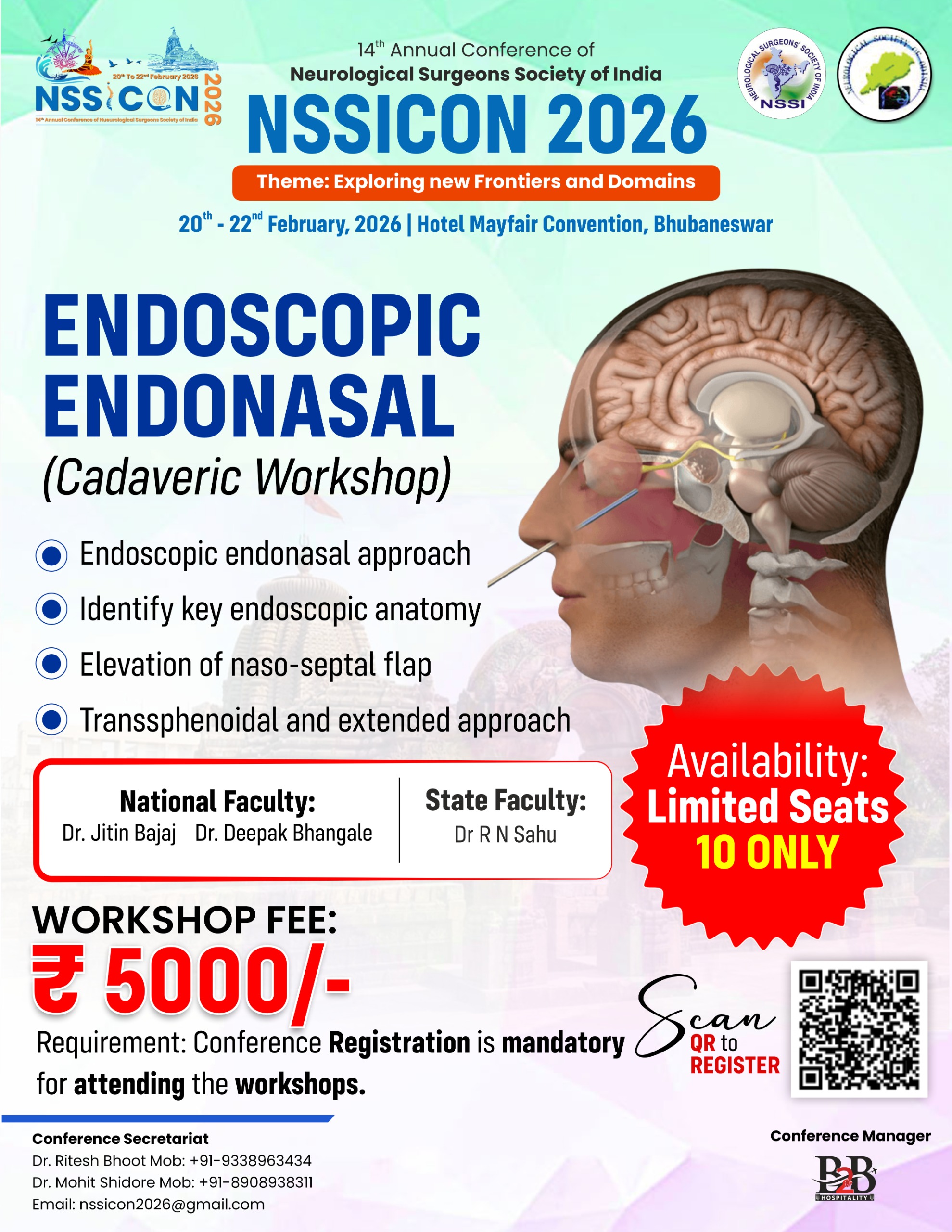 | Endoscopic Endonasal (cadaveric workshop) | 20th Feb 2026 | 10 Only | Rs 5000/- | 9.00 am - 12.30 pm |
