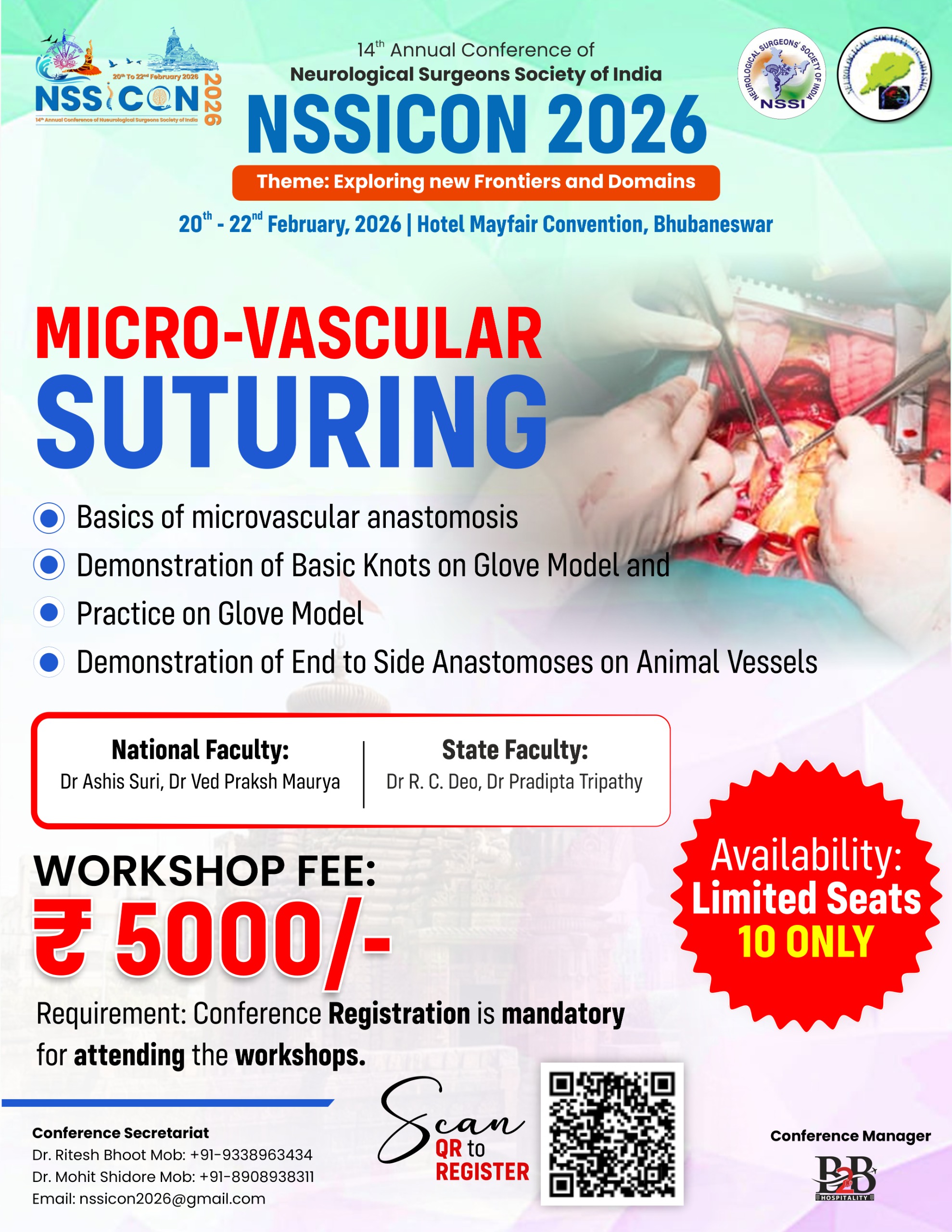 | Micro-vascular Suturing | 20th Feb 2026 | 10 Only | Rs 5000/- | 01.00 pm - 04:30 pm |