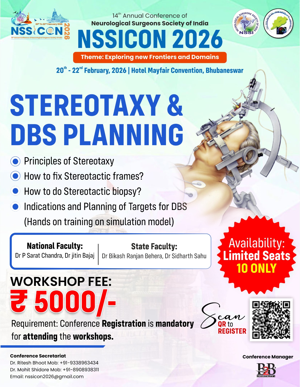 | Stereotaxy and DBS planning | 20th Feb 2026 | 10 Only | Rs 5000/- | 01.00 pm - 04:30 pm |
